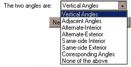 - The program will ask you to identify two angles as either obtuse, acute, or right. Use the pull-down choices to answer: