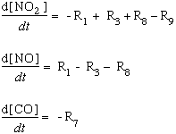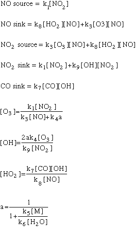 ***Keep in mind when you look at the online model, that values for initial [NO],[NO2], and [CO] are in molecules/cm3***