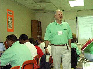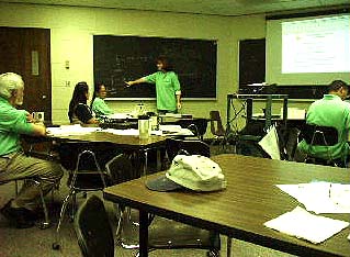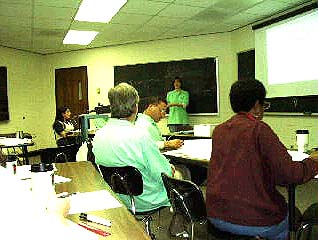 The class is attentive as Bob Panoff explains in more detail the Stella software.
