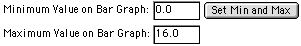 - To change the scale of the graph to a specific value, the user may enter Maximum and Minimum Y scale values in the Number Inputs, and click the "Set Min and Max" button, all shown below.
