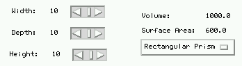 - The three scroll bars at the lower left allow the user to change the dimensions of the polyhedron. The values for the width, depth, and height, are displayed at the left of the scrollbars.