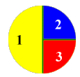 Student 1: Now I can see that Player 3 is better off than the rest of them! Mentor: Can you change the number of points each player gets to make the game fair? If Player 1 gets 4 points, how many points should Player 2 and Player 3 get to make the game fair? What if Player 1 gets 20 points? What if Player 1 gets N points? This N means we do not know exactly how many he gets. We are just looking for the connection between the number of points Player 1 gets and the numbers Players 2 and 3 get. Student: Let us see... Players 2 and 3 are expected to win about half as many games as Player 1, so they have to get twice as many points every time they win. That makes 2*N for each of them. Mentor: Let us look at a different spinner, something like this: