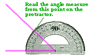 This angle is called a right angle. A third of the right angle is 30 degrees, for example, and so on. There is a useful tool that can be used to measure angles. It is called a protractor . It has units for degrees, much like a ruler has units for centimeters or inches. You can measure an angle by aligning the bottom of the protractor with one side of the angle, placing it so that the center of the protractor is at the vertex of the angle: