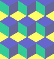 Mentor: Lines and shapes aren't the only factors that cause optical illusions. Color also affects how our brains perceive images. Tessellations, in particular, can take on very different appearances based on how they are colored. Even in the black and white picture below, if you look closely, you will see that the small white squares appear brighter than the larger ones.