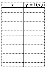 ![]() Choose the list of x values (-5, -4, -3, -2, -1, 0, 1, 2, 3, 4, 5 might be a good list) and then calculate the corresponding y values. Use this chart to fill in the points to be plotted in simpleplot. To do the explorations below, be sure to calculate many points (10 or more). Exploration 1: Up and Down Choose any function, for example, x**2. Now graph, on the same picture, x**2+1, x**2 +2, x**2+3, x**2-5, and so on (take the same function and add or subtract different numbers). What happens to the graphs? Why? Try it with several different functions. What is different? What is the same? Exploration 2: Left and Right Choose any function, for example, x**2. Using different numbers, substitute (x+number) or (x-number) for x in the function formula. Graph several such functions on the same picture, for example, x**2, (x-1)**2, (x+4)**2. What happens? Why? Try it with several different functions. What is different? What is the same? Exploration 3: Stretch-1 Choose any function, for example, x**2. On the same picture, graph the original function and the function multiplied by different numbers, for example, 3*(x**2), -5*(x**2), .7*(x**2), and so on. What do you see? Why does it happen? Try it with several different functions. What is different? What is the same? Exploration 4: Stretch-2 Choose any function, for example, x**2. Using different numbers, substitute (x*number) for x in the function formula. Graph several such functions on the same picture, for example, (x*3)**2, (x*5)**2, (x*.1)**2 What do you see? Why does it happen? Try it with several different functions. What is different? What is the same? Exploration 5: Combine! Choose a function, for example, x**2, and do all or some of the things from the above to it, for example, (2*x+3)**2-5. First graph only the original function and try to predict how the modified function will look like. Then graph both the original and the modified function on the same picture, and see if you predicted the shape correctly. Try to do modifications in a different order (e.g., 2*x+3)**2-5 and (2*(x+3))**2-5). Does it make a difference? Why? Now do it for several different functions. ![]()