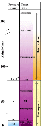 of about 1 atm or 14.7 pounds per square inch that we are designed to live in. At higher altitudes where there is less atmosphere the atmospheric pressure is reduced. As you move further and further away from the surface of the earth the gas pressure is reduced even more as can be seen in the diagram