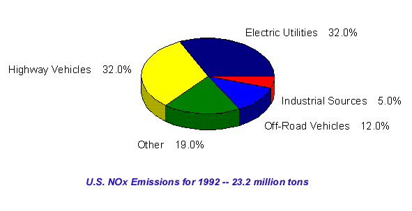 NOx ChemistryNitrogen-containing compounds are key players in any discussion of tropospheric chemistry. Typical nitrogen containing compounds include nitrous oxide (N2O), nitric oxide (NO), and nitrogen dioxide (NO2). NO and NO2 are collectively known as "NOx", where the x represents a subscript. The principle source of NOx is the high-temperature combustion of fossil fuels. There are two primary sources of NOx formation: