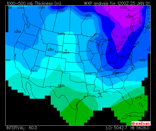 - 1000-500-mb thickness (this is the graphic shown at right)