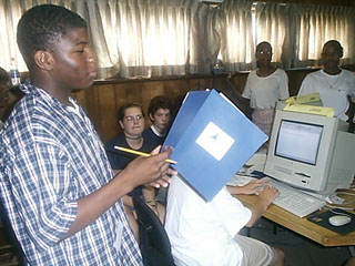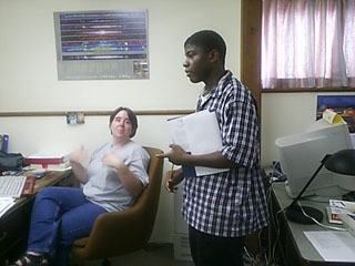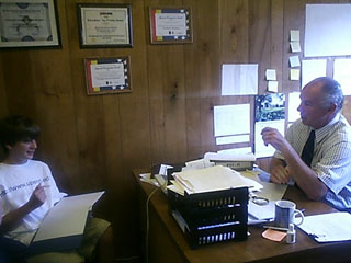 Chris, who participated in the investigation, sits down at the computer to take careful notes of what he has uncovered so far. |