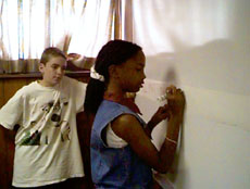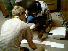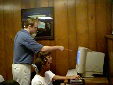 Then, the student's were given their Post Office Protocol accounts and asked to complete their e-mail settings. Worked through the process by intern Andy Hebrank, the students successfully entered the world of computer communications. "There are a couple of rules most people should and do follow," explained Andy, referring to the proper usage of the Internet. Andy, again elaborating on proper email use explained to the students "that you should use common sense [on the Internet]." The students seemed to catch on quickly, understanding both the importance and risks of this communication tool. Once the students had spent some time e-mailing one another (and following a brief humorous dialogue by Quincy, one of the IEC students), it was time to work out an understanding of how the Internet functions. Joe South explained the origins of the Internet, from its original use as a means for counterstrike in Nuclear war to its birth as an educational tool among scientists. (The importance of peer review, necessitated the need for the use of the Internet by scientists.) The way in which material is transferred over the Internet was also of tantamount importance to the young Explorers. Redundancy, the repetition of various communications channels, makes the Internet a reliable way of transferring information. The repetitions across the globe appear to look like a web, hence the name "World Wide Web." To get a better understanding of this process the students were asked to complete an exercise in which they functioned like the Internet itself, moving a text along various 'routes' until it reaches its final destination and is reassembled. The message, "Tell Matt that there child swallowed a crayon and is bleeding ink," was properly reassembled, proving that the process works. The rest of the day was completed working on interactive web sites selected by the Foundation as appropriate and educational tools. These included an aircraft design site, a pH testing site, and a personality evaluation site, all of which proved to be of great interest to the students. Completing their first day with the foundation, the students seem eager to continue their journey into the world of computer information and the World Wide Web in particular. With a proper understanding of how the Internet works fresh on their minds, the students are ready to face the knew challenges of computer modeling, collaborative tools, and reasoning exercises that face them in the upcoming days ahead.