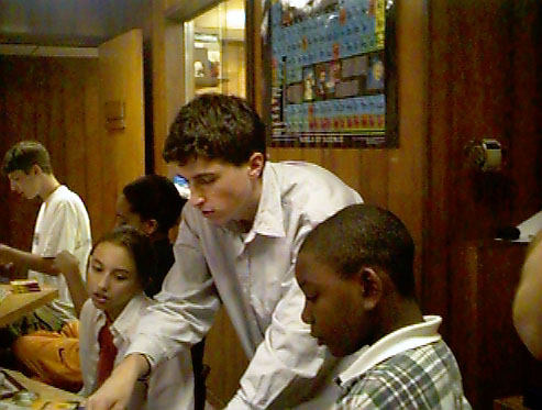 The students work hard to make their template for a tessellation. (58 K)