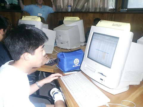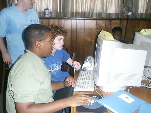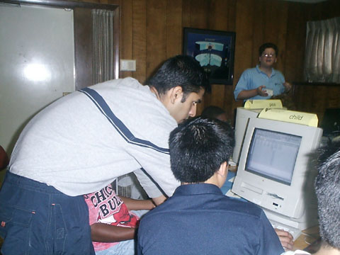 Students try to figure out Dave's "five key-stroke" challenge. |