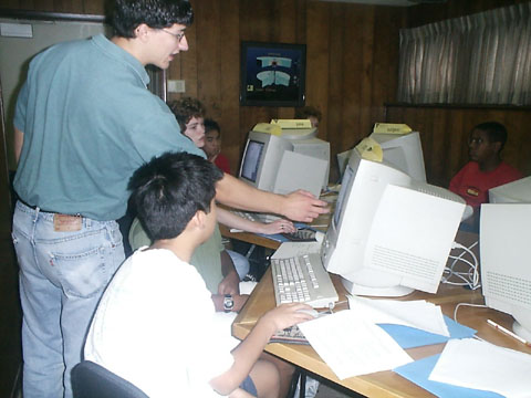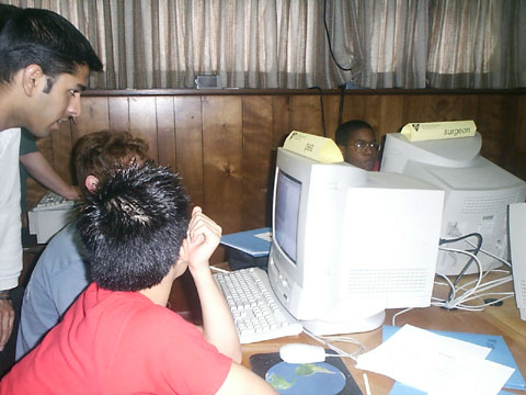 Anwar looks at the board to see Dave's speadsheet equations. |