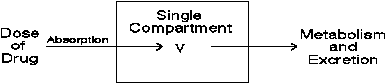 The simplest type of model used in the study of pharmacokinetics is the one-compartment model. In this model, we are concerned only with the introduction of a drug into the compartment, followed by its transformation/metabolism and subsequent excretion. Most one-compartment models are closed systems; that is, we must account for all the mass of the drug during the entire simulation. If we dose 80 mg, for example, the entire 80 mg must be accountable during the entire time period of the simulation.
