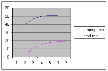 Which year is the most carbon being sequestered? Look at the flows chart. Copy the atmosphere increments and losses columns onto a spreadsheet. In a third column calculate the difference by subtracting the losses from the increments. In year 20 the atmosphere lost 6.91 MgC/ha. The forest stored this 6.91 Mg. It is important that the students differentiate between the total carbon stored during a year and the change in carbon during that year. | ||