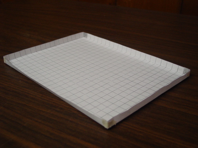 Our first box had 3x3 squares cut out of the corners of the piece of paper. We called that a cut of 3. Next we will to cut out 4x4 squares from the corners of a another sheet of paper. We'll call that a cut of 4 and so on. Let's keep doing this for cuts 1, 2, 3, 4, 5, 6, 7, 8, and 9.